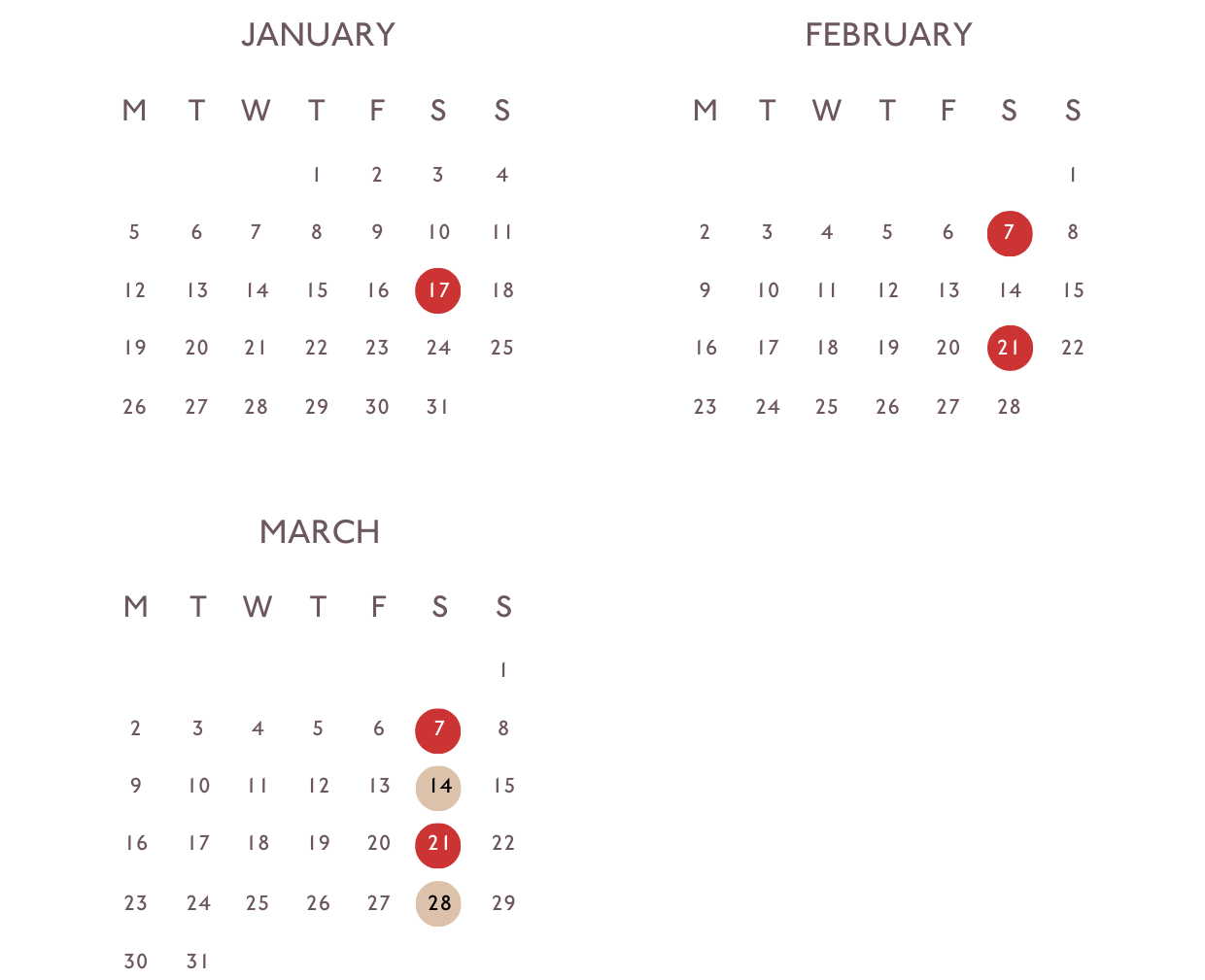 Red circles in the calendar indicate produce sale dates (9am to 1pm).